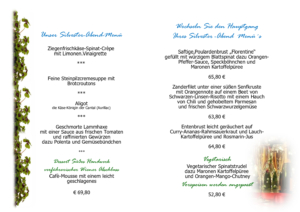 Du bist hier: Startseite1 / Unsere Feiertagsmenüs2 / Silvester 2025 Menukarte Tischkarte